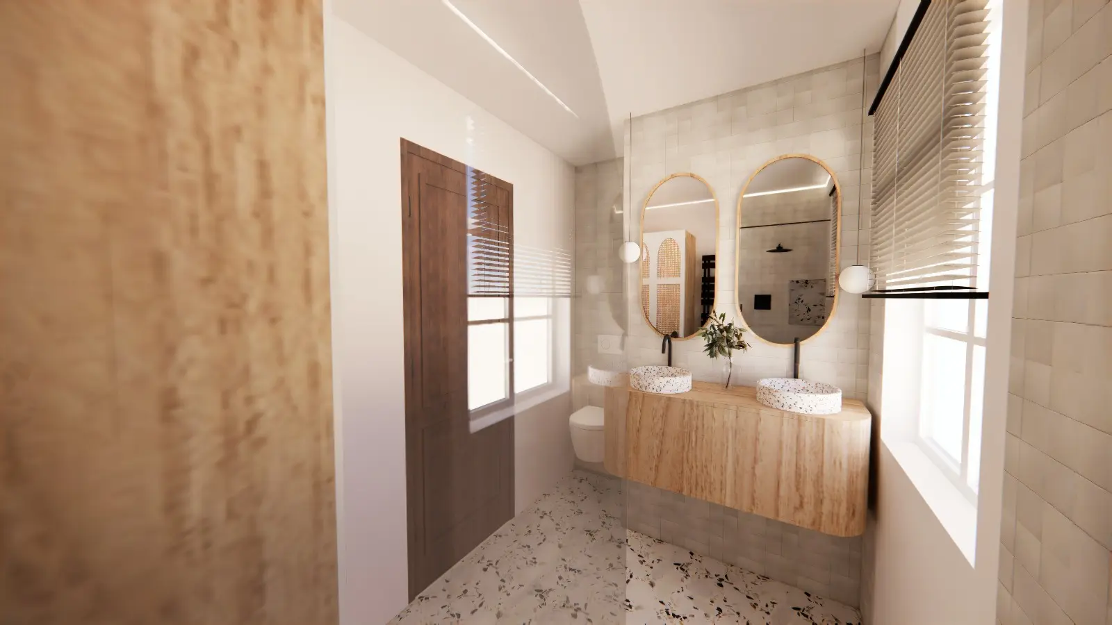 Repenser une salle de bain pour l’harmoniser avec l’élégance d’un appartement haussmannien. Un mariage délicat de terrazzo et zellige pour un résultat naturel, haut de gamme et tout en subtilité.