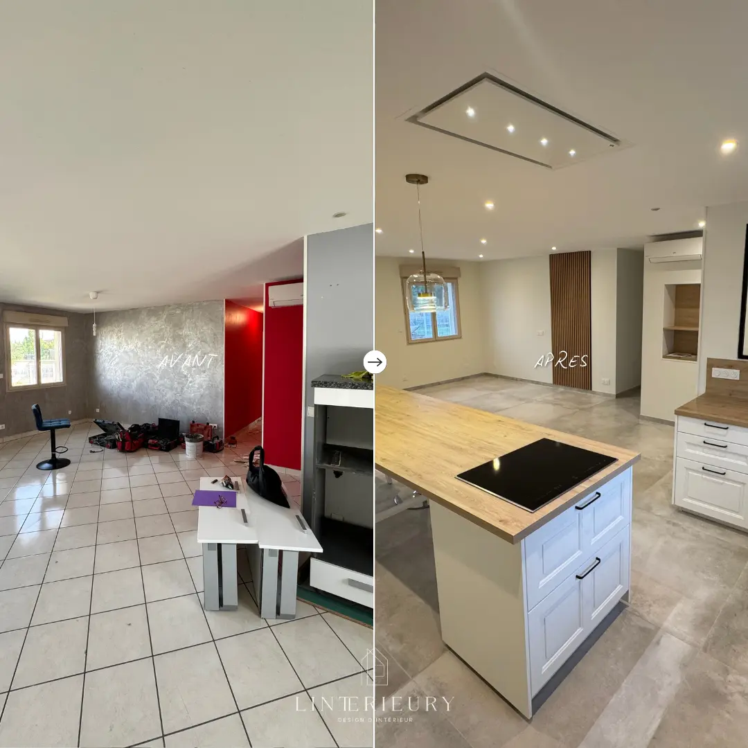 Projet de rénovation complète, de A à Z : une maison repensée dans un style doux et intemporel.