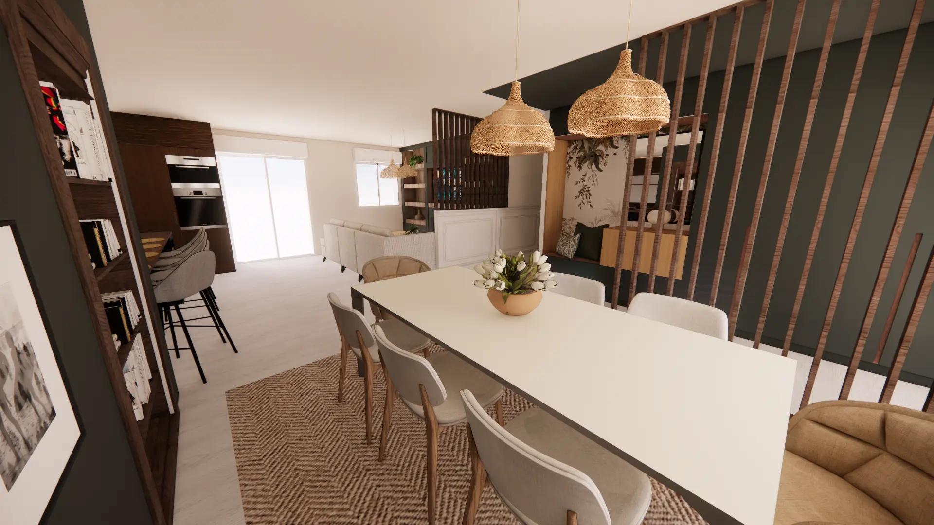 Un espace à vivre pensé pour une famille de 4 personnes, aimant recevoir. Conception sur mesure mêlant convivialité, modernité et fonctionnalité pour que chacun se sente pleinement chez soi.